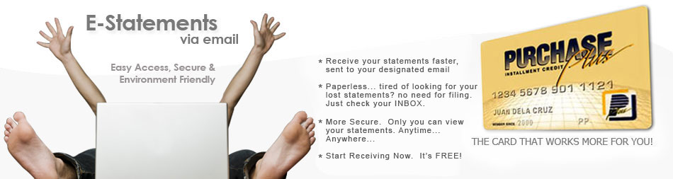 Upon enrollment, you shall continue to receive your paper Statement of Account from delivery or postal mail for the next 60 days from date of enrollment. After which, you agree that PurchasePlus shall no longer deliver your bi-monthly Statement of Account to your mailing address. Instead, we will generate on statement date and you agree to accept and view in a timely manner, the electronic form of your bi-monthly Statement of Account or E-Statement sent to your enrolled e-mail address as an attachment file.